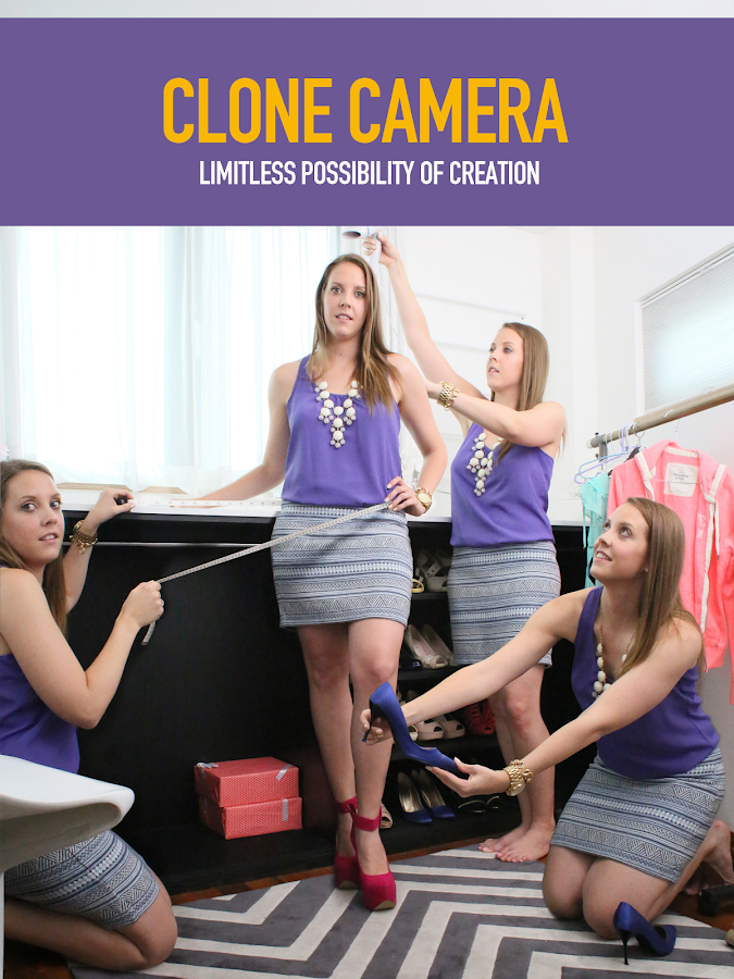Cámara Clone le permite producir fácil y perfecta foto clon en su teléfono inteligente. Sistemas de guías le ayuda a encuadrar una foto más fácilmente que cualquier otras aplicaciones y sintetizar las fotos más estable y perfectamente. La calidad de los resultados de la cámara Clone abrumar resultado de otra aplicación.